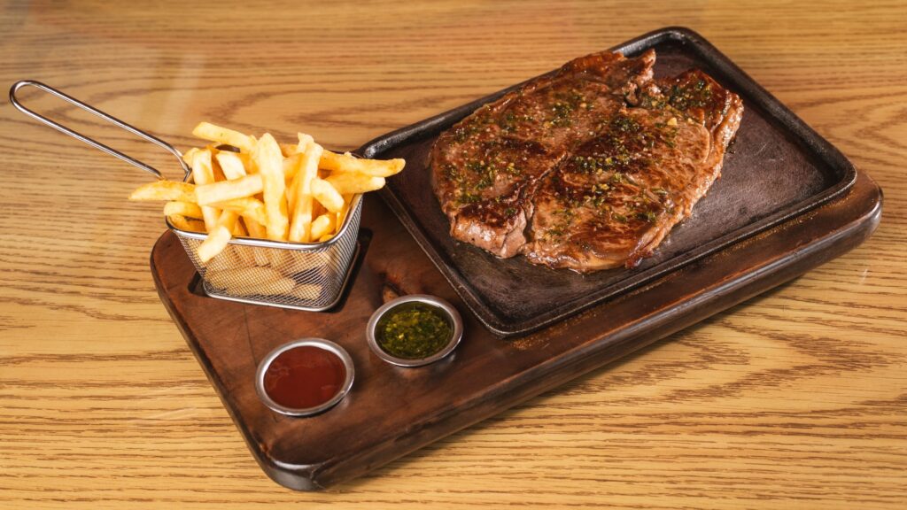 BEEF, PORK, CHICKEN, CRISPY PORK BELLY CHICHARRON) GRILLED CHORiZO, SAUSAGE YELLOW CORN AREPA, YELLOW POTATOES & FRENCH FRIES.